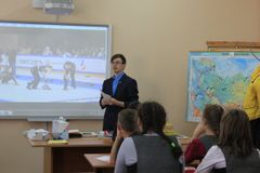 15 октября ребят из 7-х классов ждало интересное и увлекательное событие – открытый урок, посвященный зимней Универсиаде 2019, которая пройдет в г. Красноярск. Этот урок подготовили и провели наши друзья – студенты РАНХиГС, они же волонтеры социального проекта "Счастливы Вместе". Старшеклассникам были показаны видео-ролики с теми видами спорта, соревнования по которым будут проходить на зимней Универсиаде 2019 года. Затем, просмотрев видеоматериал, обучающиеся выполнили задания в рабочих тетрадях.