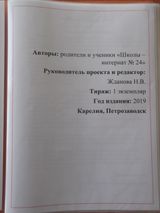 В книге, как положено, есть обложка, титульный лист, где написаны авторы книги – дети и родители нашей школы. Тираж 1 экземпляр.