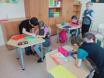 16 ноября в нашей школе стартовала "Разноцветная неделя" среди обучающихся 1 дополнительного «А», 1 «А», 2 «А», 3 «А» классов. В первый день недели было объявлено, что дни имеют своё значение, поэтому важно в этот день носить предмет либо какой-либо атрибут одежды цвета этого дня. В процессе деятельности дети естественным образом осваивали цветовую гамму. Главным признаком предмета для ребёнка является цвет. Наша жизнь наполнена цветом. И ребёнок устанавливает связи: солнце – жёлтое, трава – зелёная, небо – синее. Знакомство с цветом помогает ему полнее и тоньше воспринимать предметы и явления окружающего мира, развивает наблюдение, мышление, обогащает речь. Таким образом, возникшее противоречие: с одной стороны - важность и необходимость ознакомления детей с цветом, формирование у них сенсорных эталонов цвета, и с другой – недостаточный уровень знаний и умений детей привели к выбору темы проекта. Подробнее расскажем вам о пятом, заключительном дне, который был посвящен различным оттенкам. В этот день обучающиеся 3 «А» класса читали стихотворение "Разноцветная зебра", а затем пожелали всем: "Пусть в нашей жизни не будет чёрных полос!" Урок речевая практика был посвящен теме "Фрукты": осень добрая проходит, и зима теперь приходит, будем фрукты покупать, нам болеть нельзя никак! 1 дополнительный «А» класс начал свой день с прохождения сложного испытания: для того, чтобы начался первый урок, им надо было добыть волшебный колокольчик, а для этого нужно было пройти по волшебной тропинке. Только выполнив это задание, появился волшебный колокольчик и начался новый учебный день. А на уроке речевая практика ребята закрепляли свои знания об изученных цветах и разучивали стихи об осени, используя массажные мячи разных цветов. 1 «А» класс изучал новую букву П, учился писать ее разноцветными мелками и карандашами, ребята вспоминали предметы, начинающиеся на звук П, определяли их цвет. 2 «А» класс на уроках также работал с разноцветными массажными мячами, используя их во время пальчиковой гимнастики, считал предметы разных цветов, а также выкладывал диких животных из геометрических фигур по образцу. А во время кружка "Игротека" 1 «А» и 2 «А» классы говорили о том, что сегодня Всемирный День ребенка, а затем выполнили замечательную коллективную работу!
