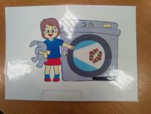 «Игра – путь детей к познанию мира». На уроках «Домоводства» - тема «Одежда». И сегодня мы решили постирать вещи в стиральной машине и просушить. Но носочки и варежки все перепутались. Мы разобрали всё по парам, посчитали, вспомнили цвета. Повесили бельё сушиться с помощью ярких прищепок – развиваем мелкую моторику. Вот какие молодцы – мамины помощники!