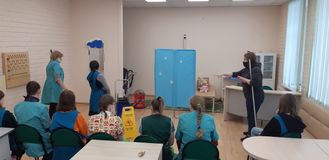 В рамках профориентационной работы с обучающимися школы, 26 февраля прошла встреча «Спроси профессионала» со специалистом клининговой компании «Клининг-групп» Валентиной Анатольевной Жареной.