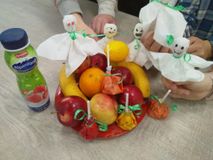 Мы приготовили вкусный фруктовый салат «Разноцветный». А ещё мы решили поиграть, пошалить. Сделали замечательные весёлые поделки с сюрпризом. Надеюсь, дети вырастут, и с удовольствием будут вспоминать свои разноцветные счастливые дни детства.
