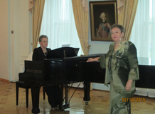 Праздничное мероприятие открыла народная артистка республики Карелия Нина Михайловна Болдырева с аккомпаниатором. Для гостей она исполнила прекрасные романсы и зарядила всех своей позитивной энергетикой.