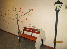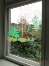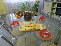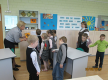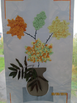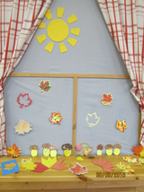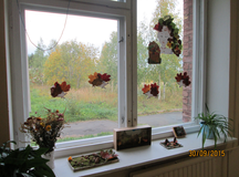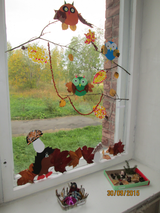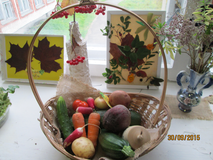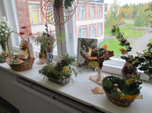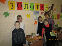 Все обучающиеся школы, учителя и родители приняли активное участие в организации выставки. Обучающиеся старших классов самостоятельно изготовляли поделки, картины, панно из природного материала, натюрморты из фруктов и овощей, коллективные работы. Первоклассникам помогали родители. Это было совместное творчество, которое позволило максимально сократить расстояние между детьми и родителями, физический контакт при общении позволил детям ощутить собственную значимость, родителям – продемонстрировать положительное отношение к продукту совместной деятельности. На этот раз выставки были оформлены в рекреациях школы. На каждой станции для детей была проведена экскурсия, которую подготовили обучающиеся школьного актива, педагоги школы. Дети читали стихи, рассказывали о признаках осени, отгадывали загадки, рассматривали работы. На станции трудового обучения для детей были представлены работы, выполненные в разных техниках. Учитель домоводства Чвей Л.И. провела мастер –класс по сервировке стола, где можно было уловить осенние мотивы. Дети совместно с педагогом испекли печенье в виде листьев, составили композицию из цветов и веточек черноплодной и красной рябины.