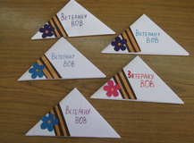 Еще одним подарком для ветеранов стала открытка в виде фронтового письма-треугольника.