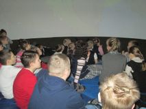 Фантастическим и эффектным завершением празднования Дня космонавтики, стало посещение планетария. 14 апреля к нам в гости приехал Петрозаводский планетарий «Галакси». В спортивном зале был установлен огромный купол-экран, на котором и происходило волшебство. Желающих увидеть удивительный мир космоса оказалось так много, что ребят пришлось разделить на 3 потока. Обучающиеся младшей школы с удовольствием посмотрели мультик о космосе (видеоматериал был интересен, доступен и прост). Старшеклассники же узнали много нового из истории освоения космоса и увидели яркие и динамичные картины звездного неба.