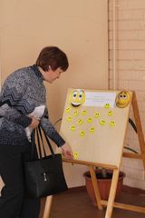 В работе секции «Педагогическая гостиная» приняла участие учитель музыки Ковальчук О.В. В увлекательной форме она рассказала о коррекционной направленности музыкальных занятий в работе с обучающимися с ОВЗ. Гости с удовольствием выполнили упражнения под музыкальное сопровождение.