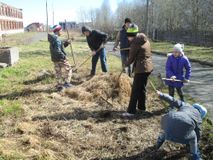 - подготовка территории захоронения красноармейца Яши Степанова к ежегодному митингу памяти, посвященному Победе в ВОВ;