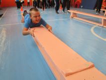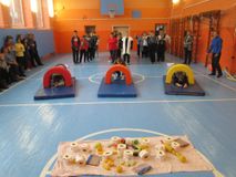 Спортивное мероприятие проводилось в трёх категориях: обучающиеся с нарушением ОДА, обучающиеся начальной и старшей школы. Для 11 «Б» класса была предложена полоса препятствий, которую они активно преодолевали ползком на животе. Обучающиеся начальной и старшей школы сначала размялись, выполнив зарядку под музыку, после этого приступили к выполнению эстафет. Ребятам было предложено 5 эстафет: тропа здоровья, переплыви бассейн, перетягивание каната, друзья товарищи, составь слово.