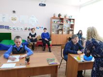 В 10.00 гости нашей школы приняли участие в педагогическом лектории, где обсудили проблему создания условий для успешной социализации обучающихся ГБОУ РК «Школа-интернат № 24», как один из инструментов реализации Федерального государственного стандарта совместно с директором школы-Кузьминой Мариной Николаевной и заведующей отделом воспитательной работы – Вагиной Капиталиной Алексеевной.